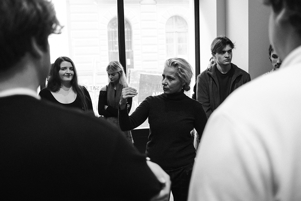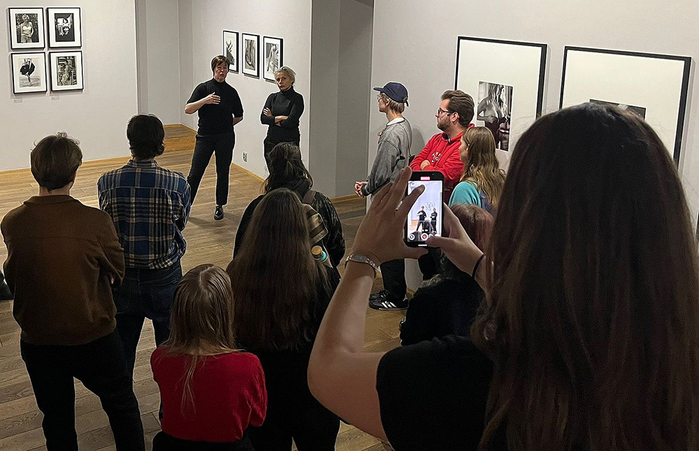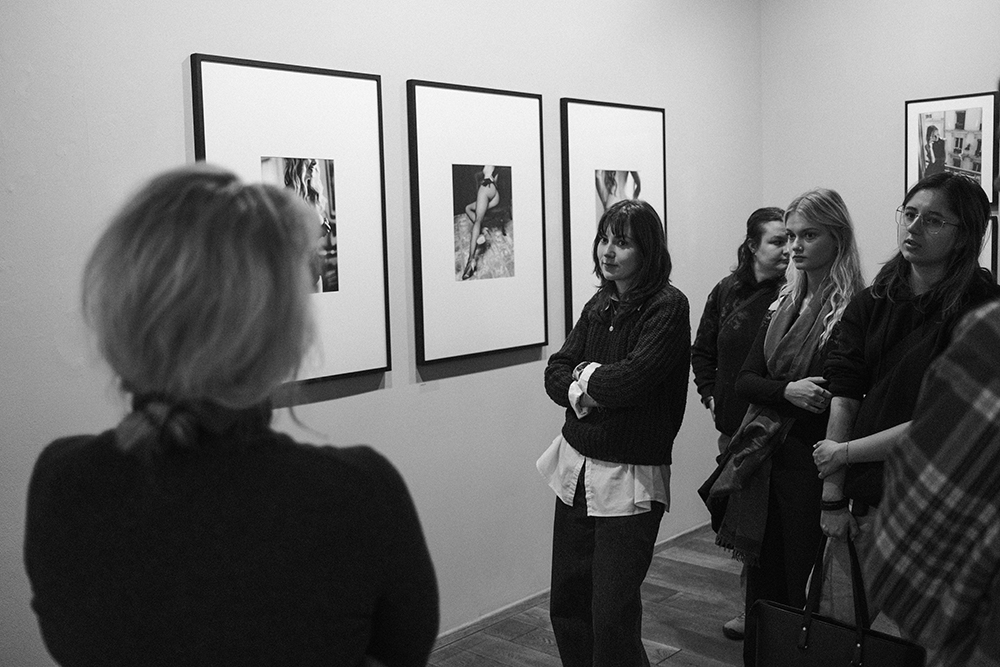 Pro studenty oboru Fotografická tvorba na Vyšší odborné škole Michael okomentovala dnes Tereza z Davle svou výstavu Padesát na padesát v Leica Gallery. Kdo zná převažující atraktivní téma jejích fotografií a nepatetické vyprávění o nich, ten si umí představit, jak asi studenty zaujala. Ředitelka Leica Gallery Míla Dubská (uprostřed) seznámila studenty s principy galerijní práce, což jsou informace pro adepty fotografie rovněž cenné a ne zrovna snadno dostupné.